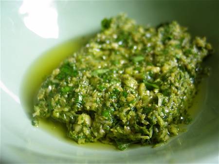 - een paar eetlepels rucola pesto (zie onderstaand recept)